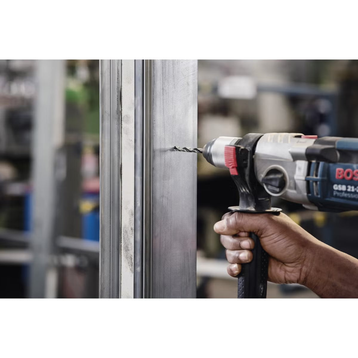 HSS-Spiralbohrer PointTeQ ermöglicht schnelles Bohren in Metall aufgrund des PointTeQ-Designs an der Bohrspitze Selbstzentrierende Spitze verhindert Wandern, wodurch schnelles und einfaches Anbohren möglich ist Erhöhte Bohrrate erzeugt weniger Hitze und Verschleiß PointTeQ-Design an der Bohrspitze bleibt scharf und hält Dauereinsatz stand Dieser Bohrer ist zum Bohren von Durchgangs- und Zentrierlöcher in legierten und unlegierten Stahl, in Nichteisenmetalle, Gussstahl, Gusseisen und Kunststoff. Es besteht ein niedriges Bruchrisiko, besonders für Bohrer mit einem Durchmesser unter 6 mm, da der Bohrer so hergestellt wurde, dass er einen hochelastischen Körper hat. Die mit Schwarzoxid beschichtete Nut ermöglicht eine schnelle Entfernung der Späne. Der HSS-Spiralbohrer PointTeQ ist gemäß DIN 338 hergestellt. Der Bohrer ist Typ N (kleiner Seitenspanwinkel) mit einem Spitzenwinkel von 135 Grad. Der Schaft ist zylindrisch (der Schaftdurchmesser entspricht dem Bohrerdurchmesser). Er wird mit Bohrständern und Bohrschraubern verwendet.