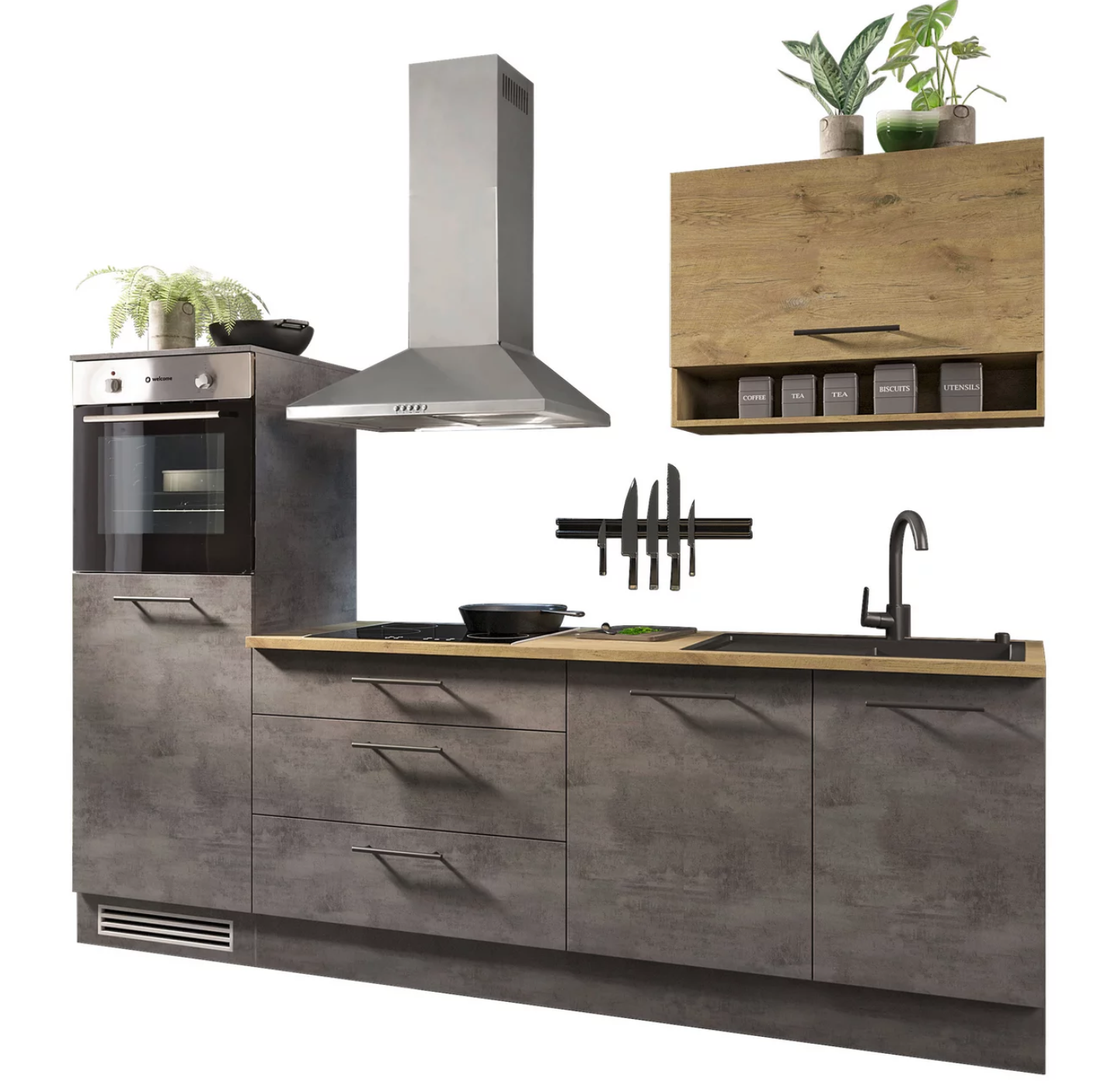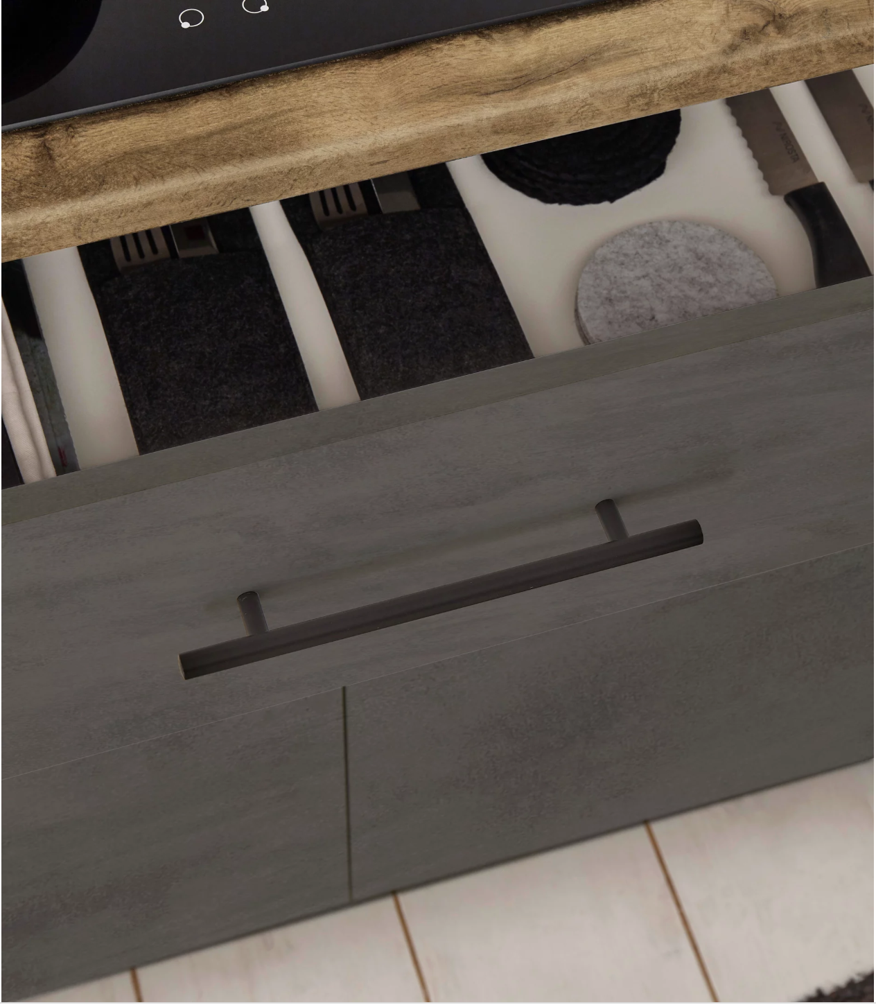 • Front: Chromix Anthrazit kombiniert mit Wild Eiche Nachbildung