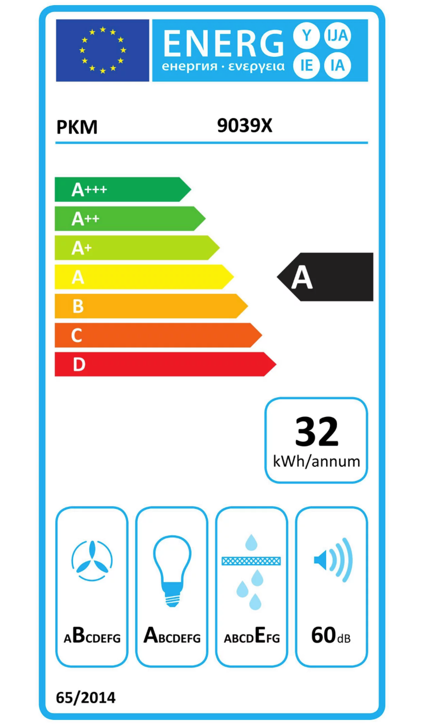 Kopffreihaube 9039X, Glas Schwarz, Energieeffizienzklasse A