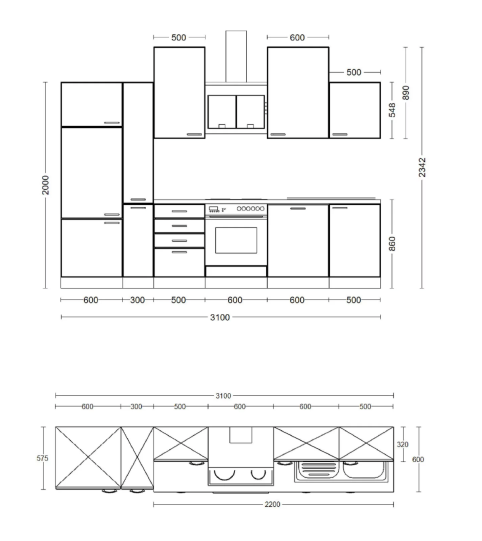 Küchenblock Elva 310x234x60 cm
