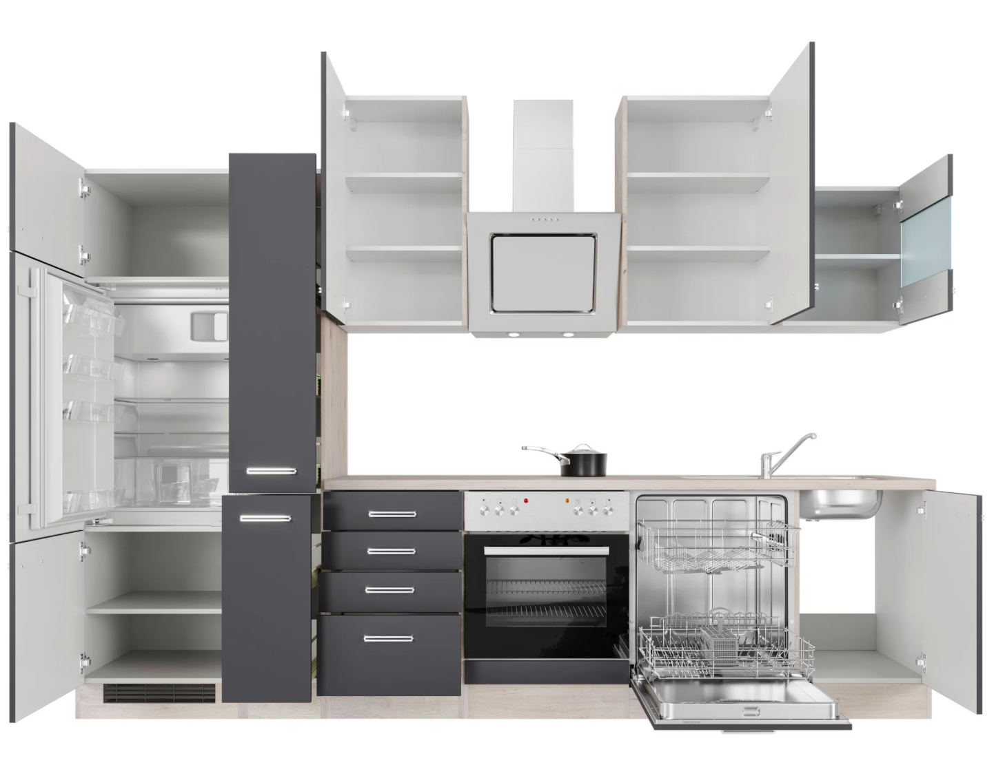 Küchenblock Elva – Anthrazit strukturiert, ca. 310 cm
