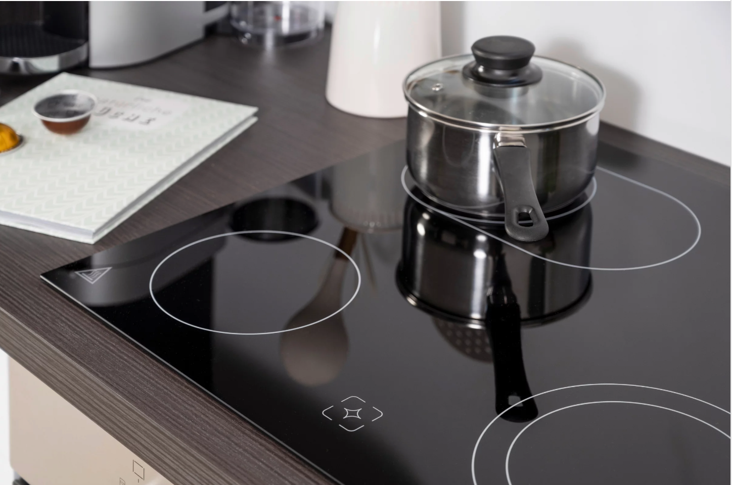 Alle Türen und Auszüge sind mit Soft-Close-Funktion ausgestattet (Ausnahme: Apothekerschrank). Der gesamte Block ist reversibel, d. h. er kann seitenverkehrt aufgebaut werden.