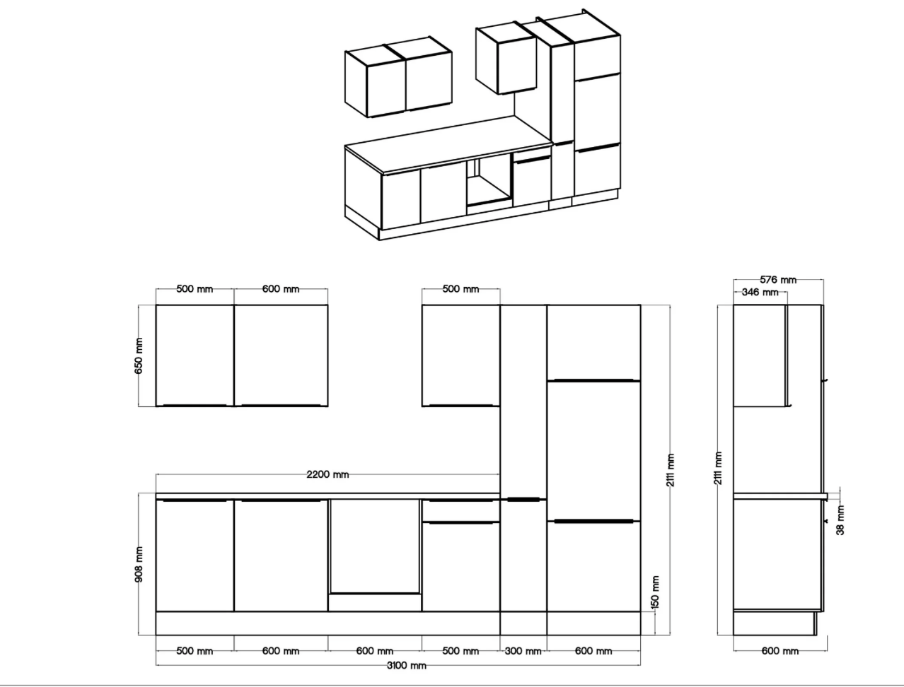 Maße (B/H/T): ca. 310 x 211 x 60 cm | Arbeitshöhe: 91,5 cm