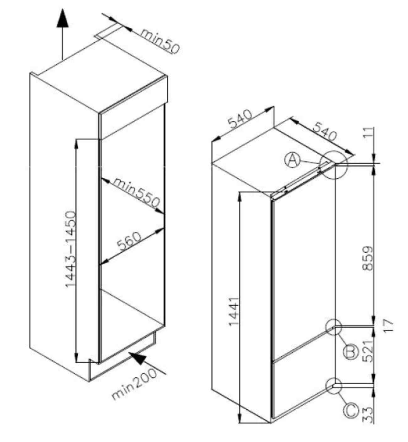 Kühlschrankumbau für Kühl-/Gefrierkombination (60 cm)