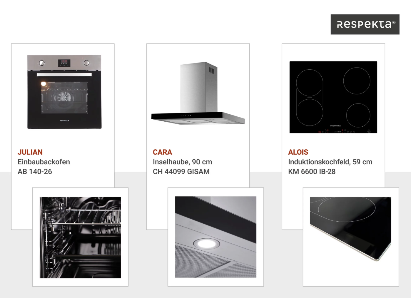 • Soft-Close: Alle Türen & Auszüge mit Soft-Close-Funktion (außer Kühlschranktür)