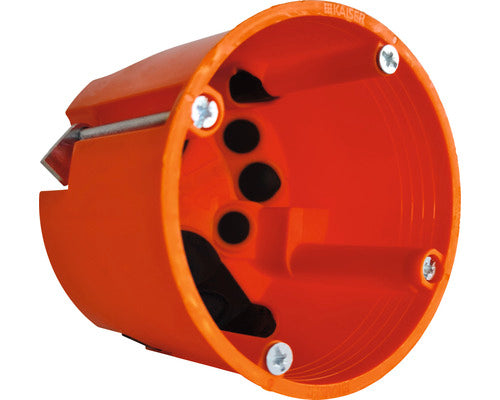 Festgezurrt: Die Kaiser Geräte-Verbindungsdose O-range Econ ist robust, vielseitig montierbar und ideal für sichere Elektroinstallationen im Innenbereich.
