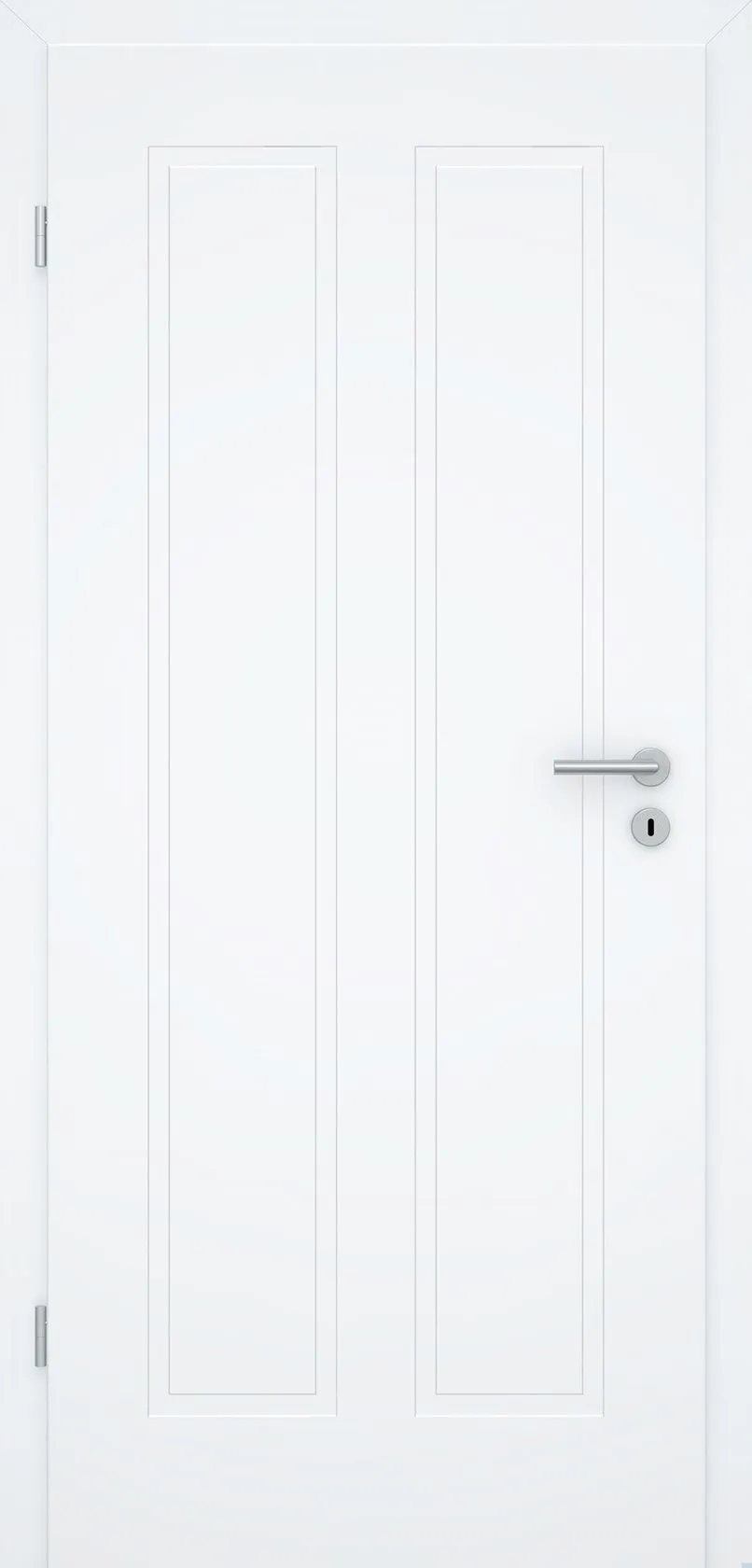 Diese elegante Innentür verbindet klassische Kassettenoptik mit moderner Geradlinigkeit – perfekt für alle, die Wert auf ein stilsicheres und wohnliches Raumgefühl legen. Die dezent eingeprägten Streifen im Türblatt sorgen für ein spannendes Spiel aus Licht, Schatten und Tiefe. Dank der lackierten Weißlack-Oberfläche in einem Farbton ähnlich RAL 9010 wirkt die Tür freundlich, ruhig und harmonisch.