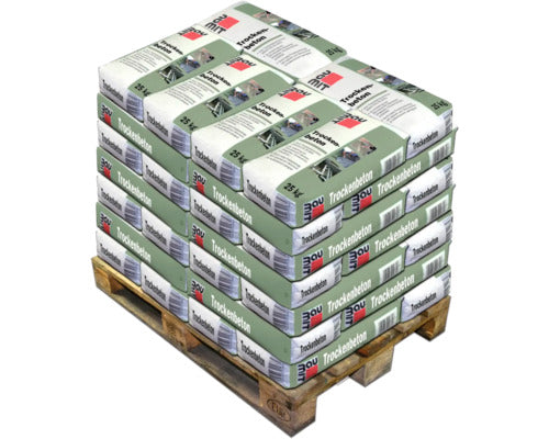 Produktmerkmale des Baumit Trockenbetons C25/30 25 kg Darum solltest Du zugreifen: Der Trockenbeton ist vielseitig und eignet sich zur Herstellung von DIN-relevanten Bauteilen wie Ringankern, Tür- und Fensterstürzen. Er ist perfekt zum Betonieren von Kleinfundamenten und für diverse Betonreparaturen. Der Trockenbeton entspricht der Festigkeitsklasse C 25/30 gemäß DIN EN 206-01 und ist als Estrich nach DIN EN 13813 klassifiziert. Die Zusammensetzung umfasst Zement, Gesteinskörnung und spezielle Zusätze zur besseren Verarbeitung und Haftung. Nach dem Erhärten zeichnet er sich durch hohe Festigkeit und Witterungs- sowie Frostbeständigkeit aus. Trockenbeton kann in Innenräumen und Außenbereichen verwendet werden und eignet sich als Estrichmörtel für Fußbodenkonstruktionen sowie zur Herstellung von Bauteilen wie Ringankern, Tür- und Fensterstürzen.