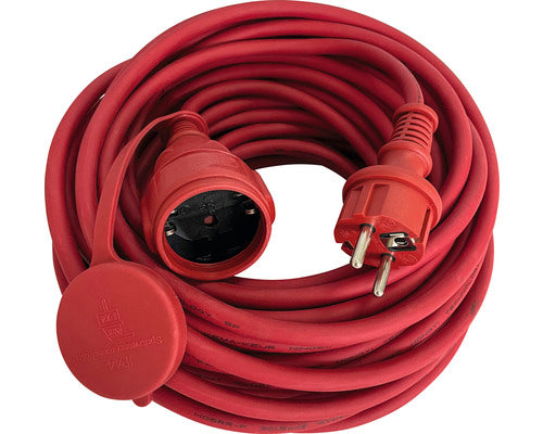 Gummi Verlängerungskabel mit Deckel 25 m IP44 H05RR-F 3G1,5 rot geeignet für Feuchtraum + kurzzeitiger Einsatz im Freien