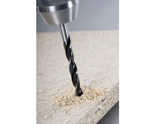 Hitzebeständig bis 450° C. Zum Bohren von Weich- und Harthölzern, Spanplatten, Hartfaserplatten, zum Dübellochbohren.
