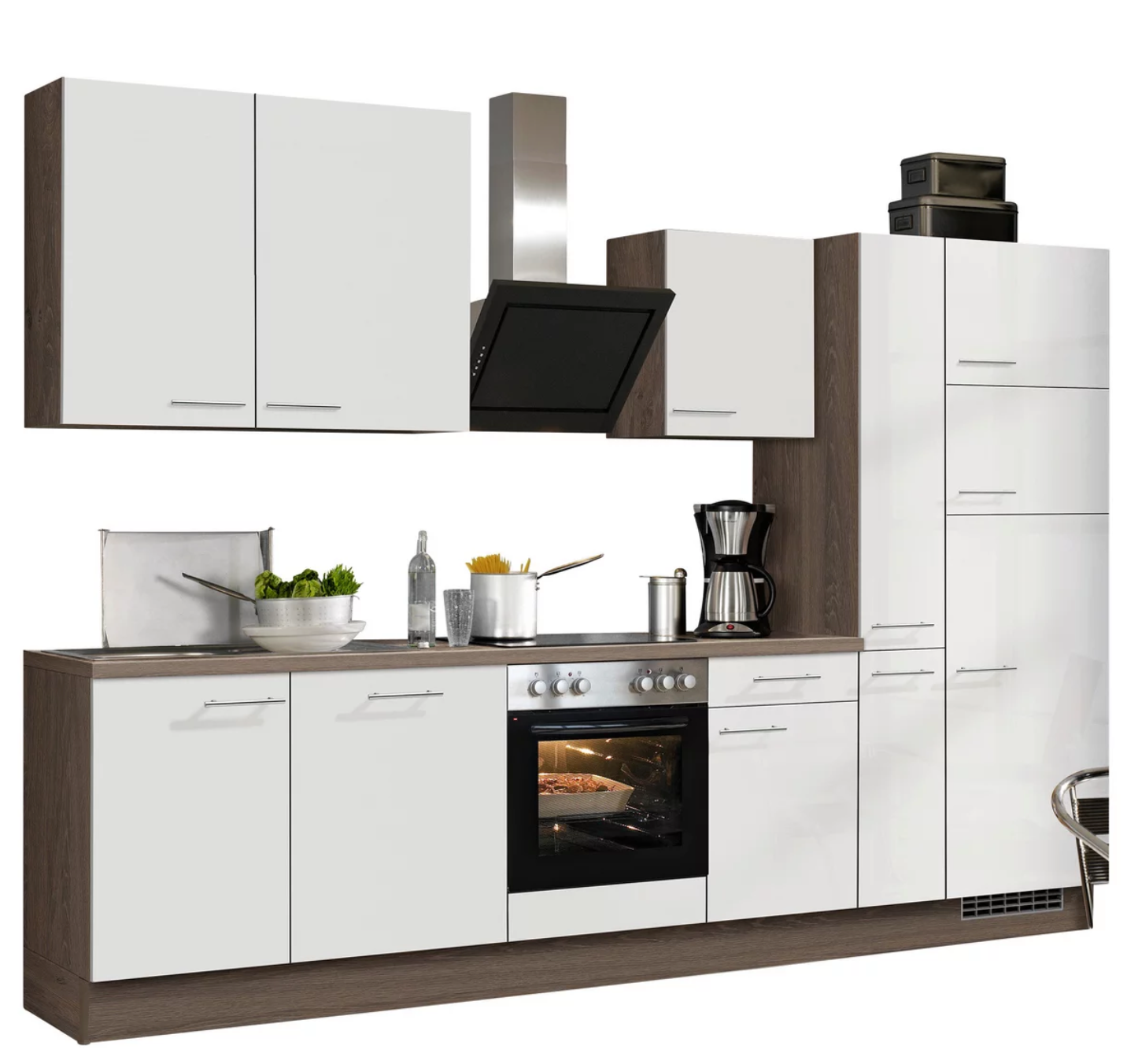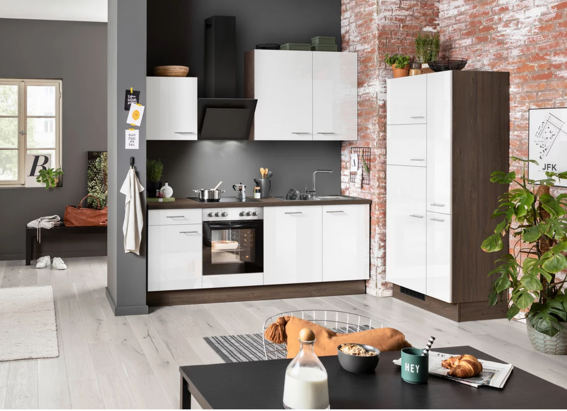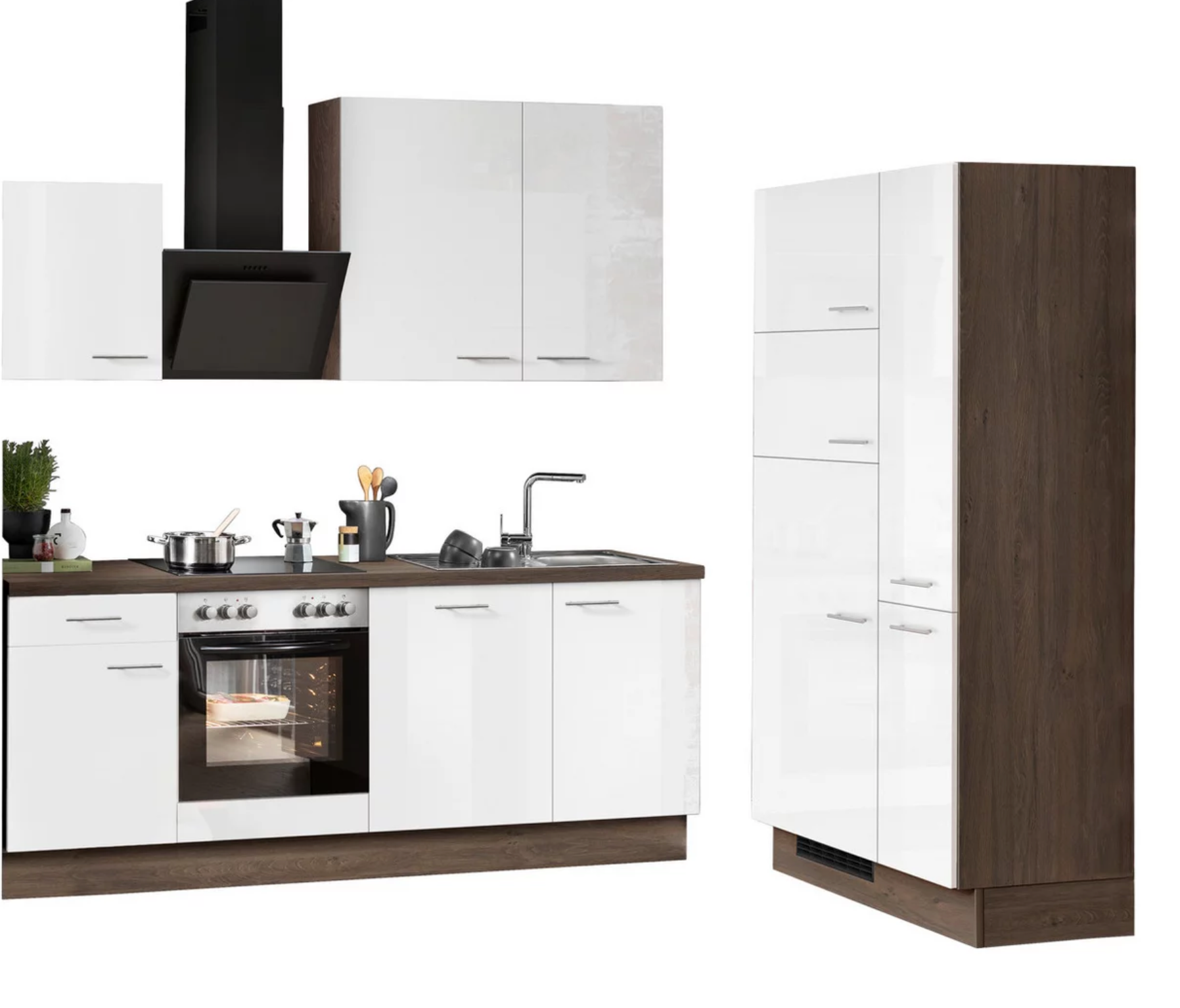 Impuls Küchenblock IP4050 – Weiß Hochglanz / Eiche-Optik