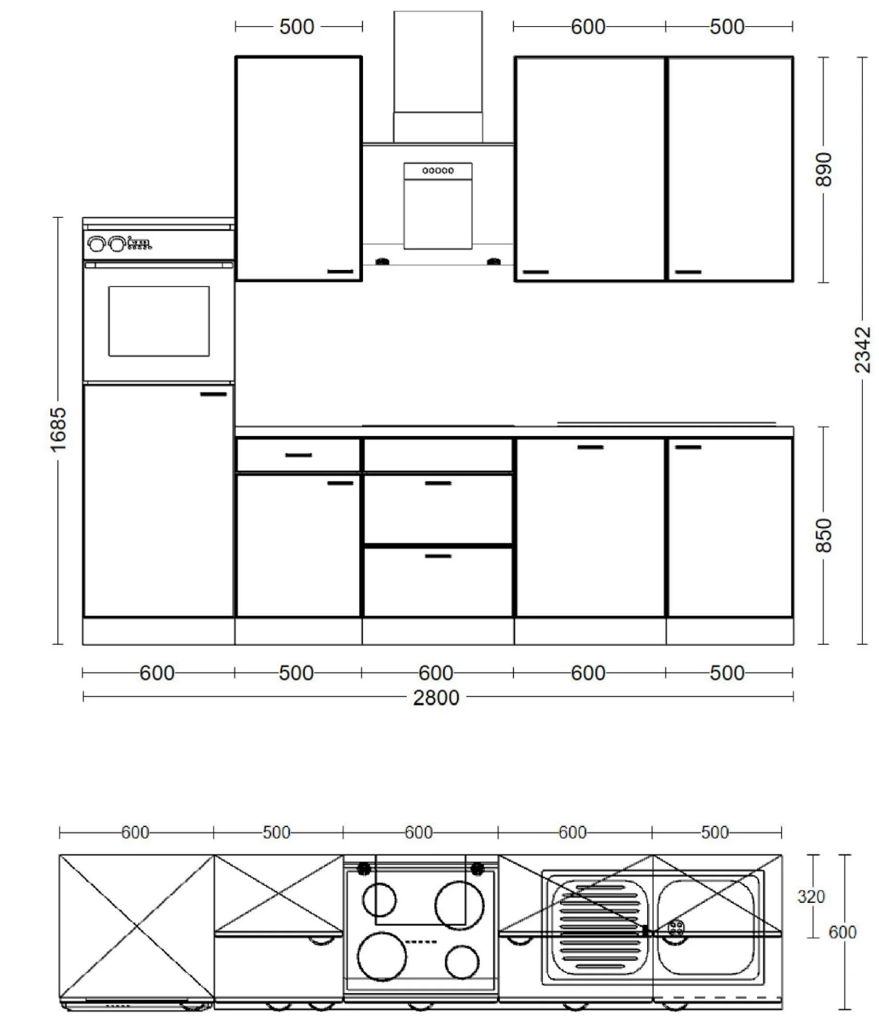 Kochstellenunterschrank 60 cm mit fester Blende & 2 Auszügen