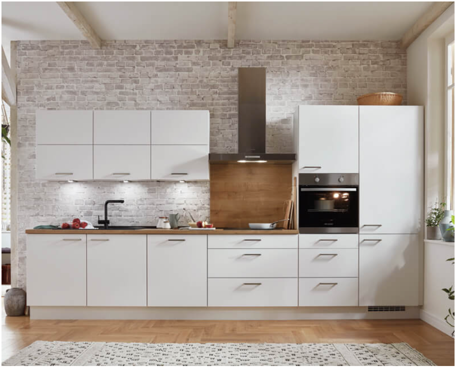 Die nobilia elements Küche „Family“ ist die perfekte Lösung für alle, die eine hochwertige, langlebige und flexibel planbare Küchenzeile suchen. Mit einer Gesamtlänge von 3,90 m bietet sie viel Stauraum, moderne Geräteumbauschränke und eine klare, zeitlose Optik in Alpinweiß.