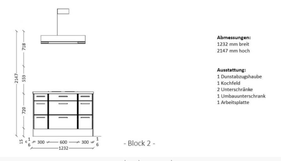Block 3 – Backen/Kühlen/Stauraum (153 cm)
