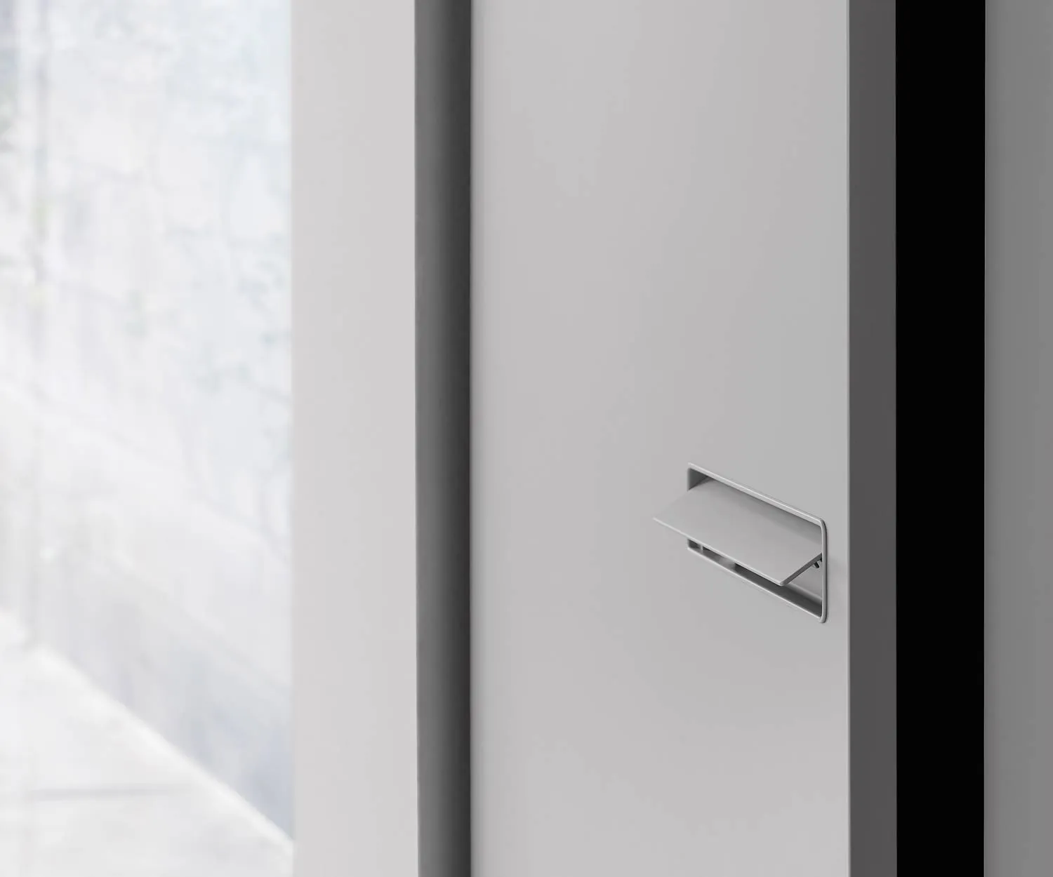 Die Türen werden über eine dezente Griffklappe (Move-System) geöffnet, die über die gesamte Türhöhe verläuft – für eine besonders puristische Optik ohne sichtbare Griffe.