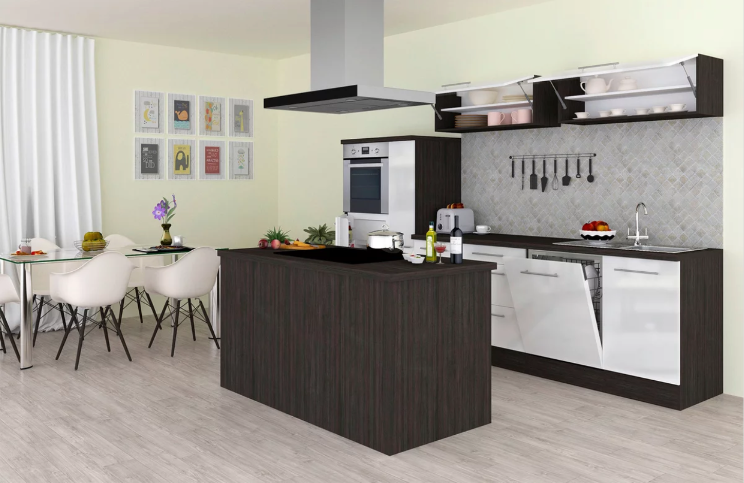 Die Respekta Premium-Inselküche begeistert mit großzügigem Stauraum, moderner Ausstattung und hochwertigen Elektrogeräten. Die Kombination aus eleganten MDF-Fronten in Weiß Hochglanz und robusten Metallgriffen in Edelstahloptik verleiht der Küche einen exklusiven Look. Die integrierte Kochinsel mit zusätzlicher Arbeitsfläche macht sie zum Mittelpunkt jedes Zuhauses.