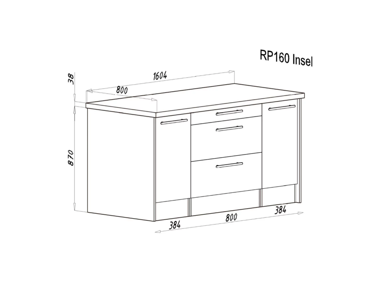 • Insel: ca. 91 x 160 x 80 cm (H x B x T)