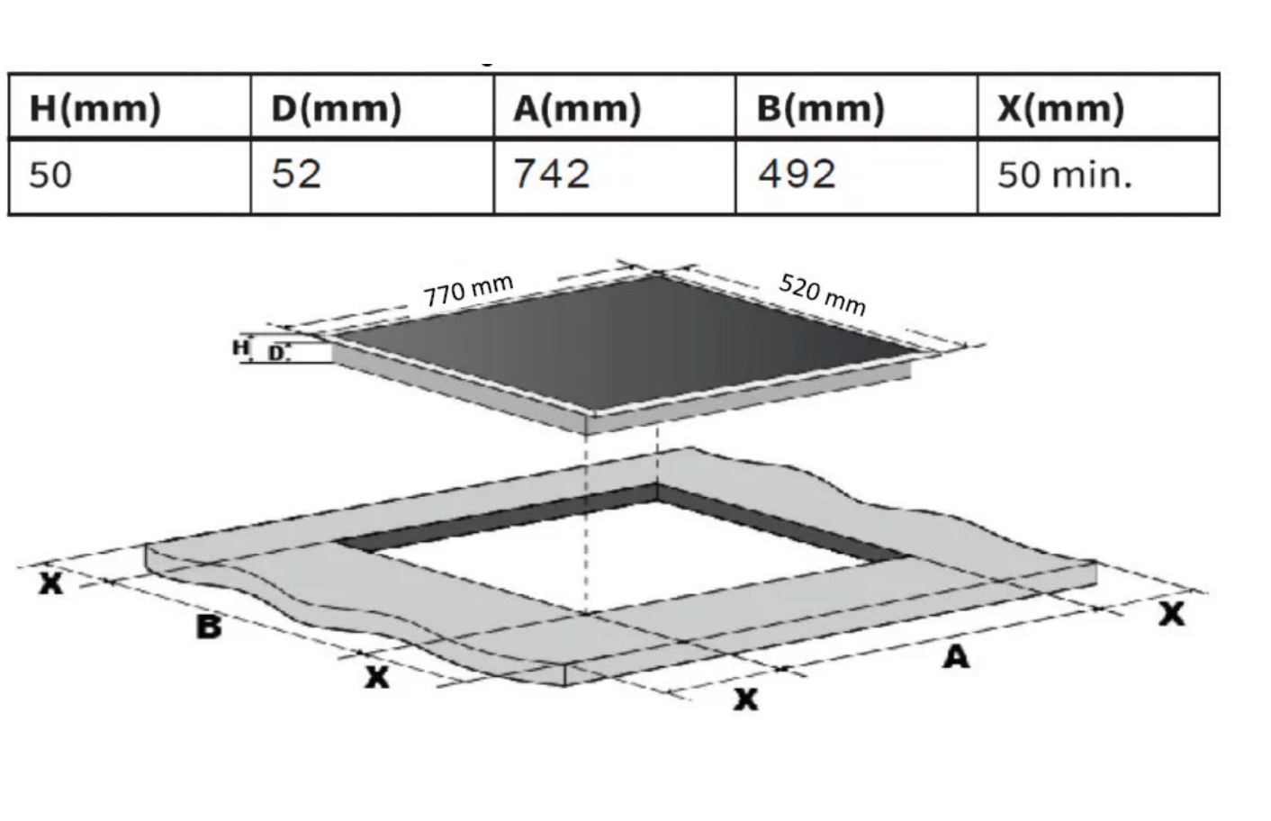 • Arbeitsplatten: 38 mm stark, ohne Ausschnitte