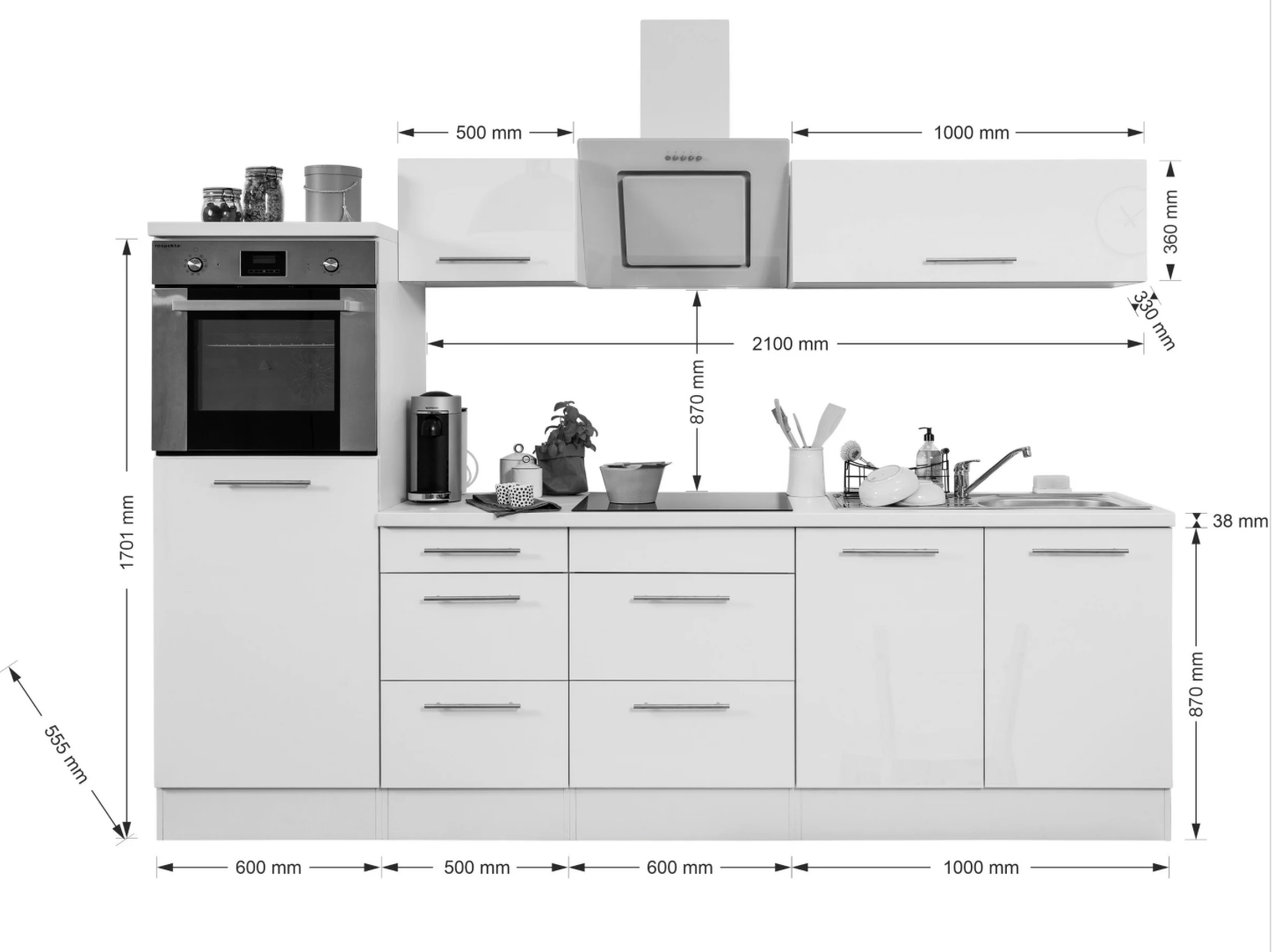 Arbeitshöhe: 91 cm | Fronten: MDF Hochglanz