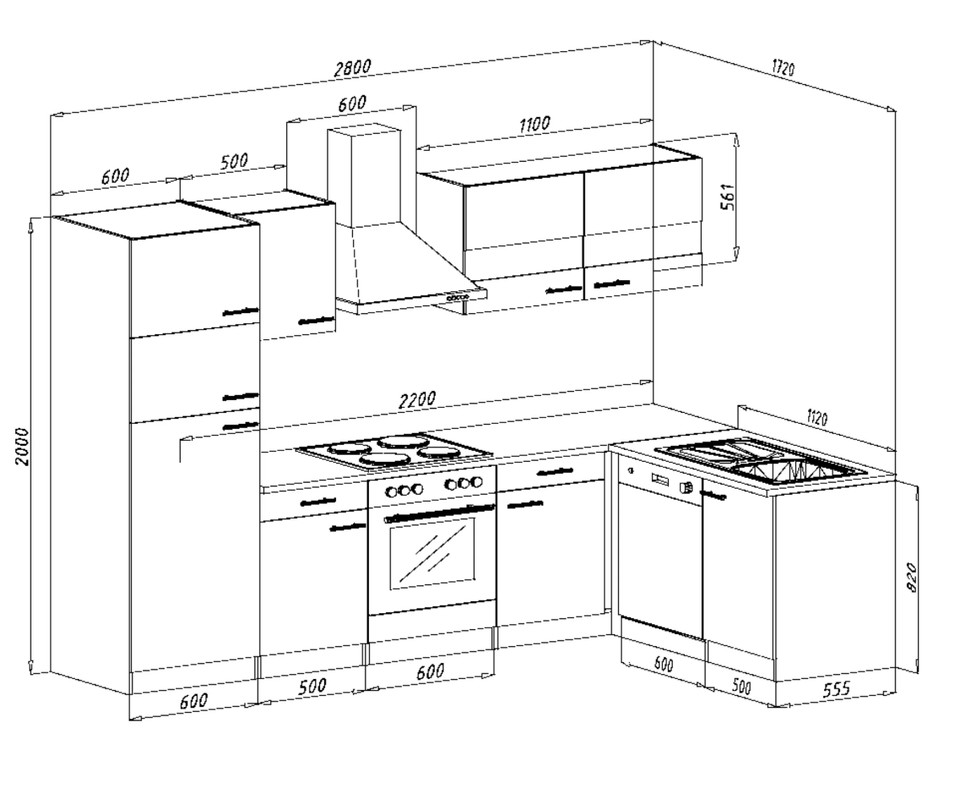 • Großzügiger Eckschrank (Stellmaß 110 cm, ca. 95 cm nutzbar)