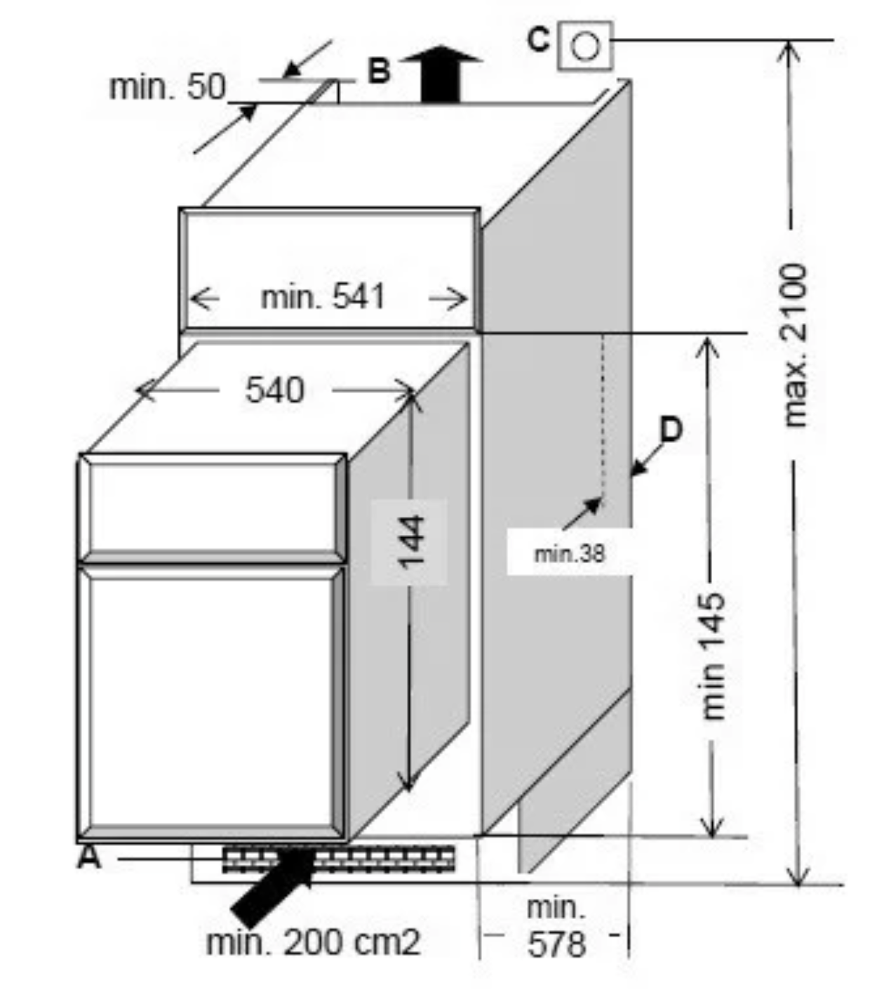 • Einbau-Kühl-/Gefrierkombination GKE144 – Energieeffizienzklasse F