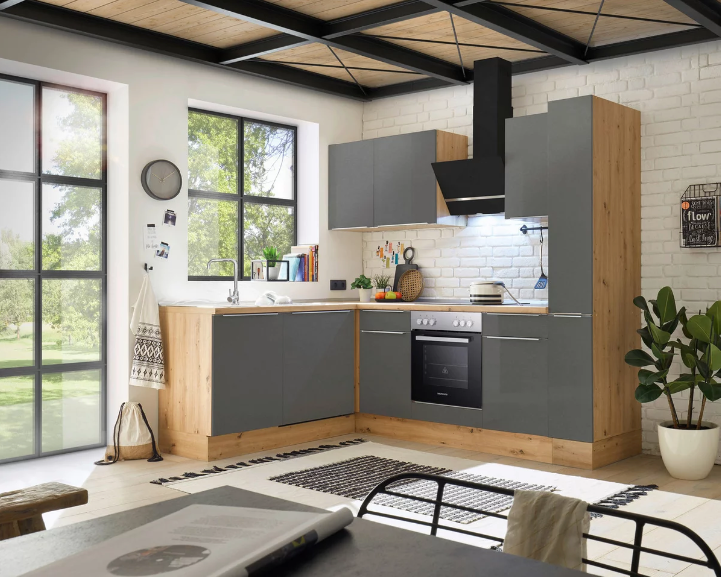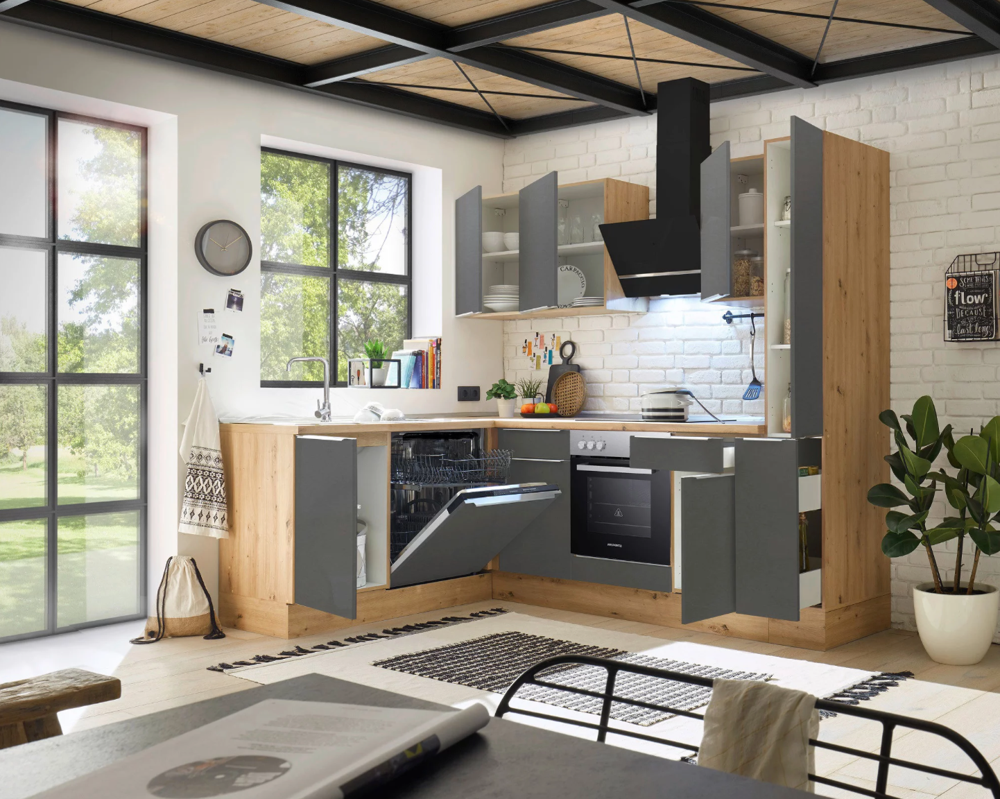 ✨ Mit der Respekta Winkelküche Marleen erhalten Sie eine elegante Küche in Grau Matt, die nicht nur durch ihre moderne Optik überzeugt, sondern auch mit hochwertigen Elektrogeräten, cleveren Stauraumlösungen und langlebigen Materialien ausgestattet ist.