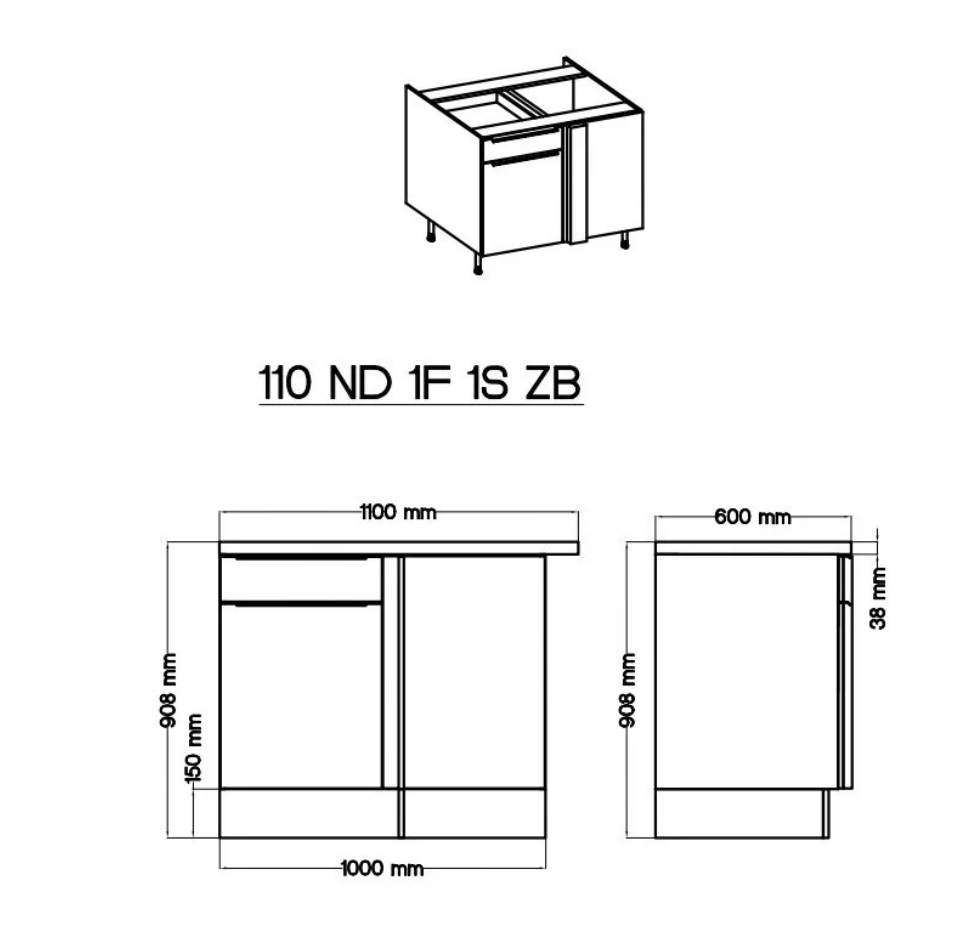 Eckunterschrank mit Schublade (110 cm, ca. 100 cm nutzbar)