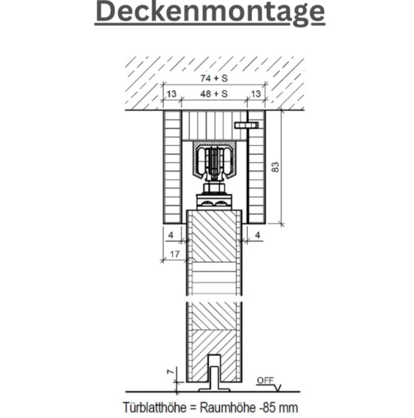 Diese Schiebetür ist für die Montage vor der Wand konzipiert. Bitte bei der Ermittlung der Zargenwandstärke immer von der fertigen Wandoberfläche (inkl. Putz, Fliesen etc.) ausgehen.