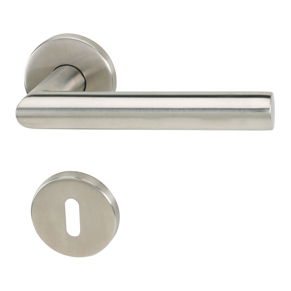 Die Türdrückergarnitur aus satiniertem Edelstahl von der Marke B1 ist für Zimmertüren mit einer Stärke von 37 bis 42 mm geeignet. Sie besteht aus einem Drücker sowie einem Schlüsselloch. Die eingearbeitete Rückholfeder sorgt für einen waagerechten Sitz des Drückers. Erhältlich ist die Garnitur in verschiedenen Ausführungen: Wählen Sie zwischen einem geraden und einem geschwungenen Griff. Das benötigte Montagematerial sowie eine Anleitung sind im Lieferumfang enthalten.