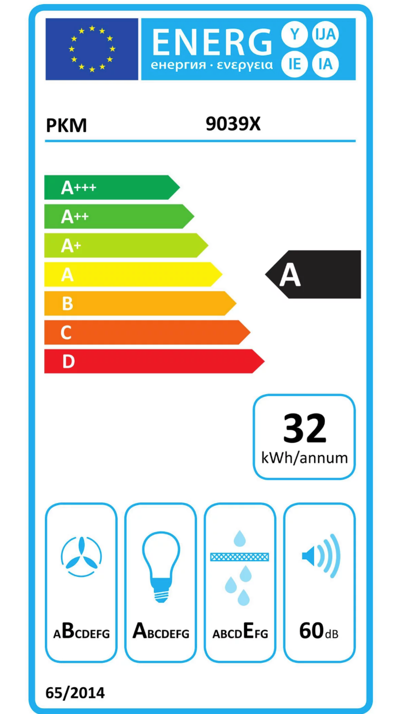 Kopffreihaube 9039X, Glas Schwarz, Energieeffizienzklasse A