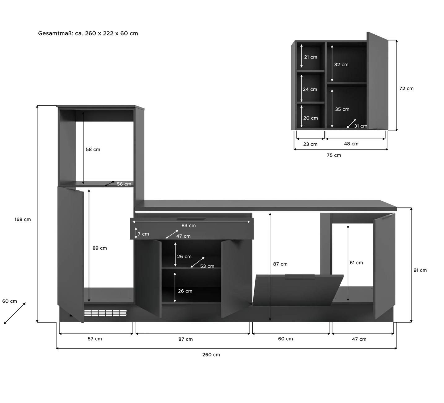 Gesamtmaß: B/H/T ca. 260 × 222 × 60 cm